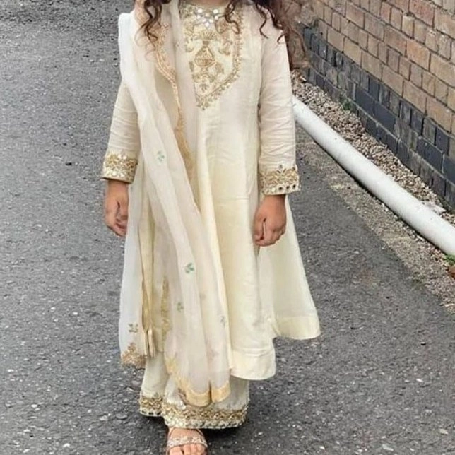 off-white/cream anrkali kurta with plazza
