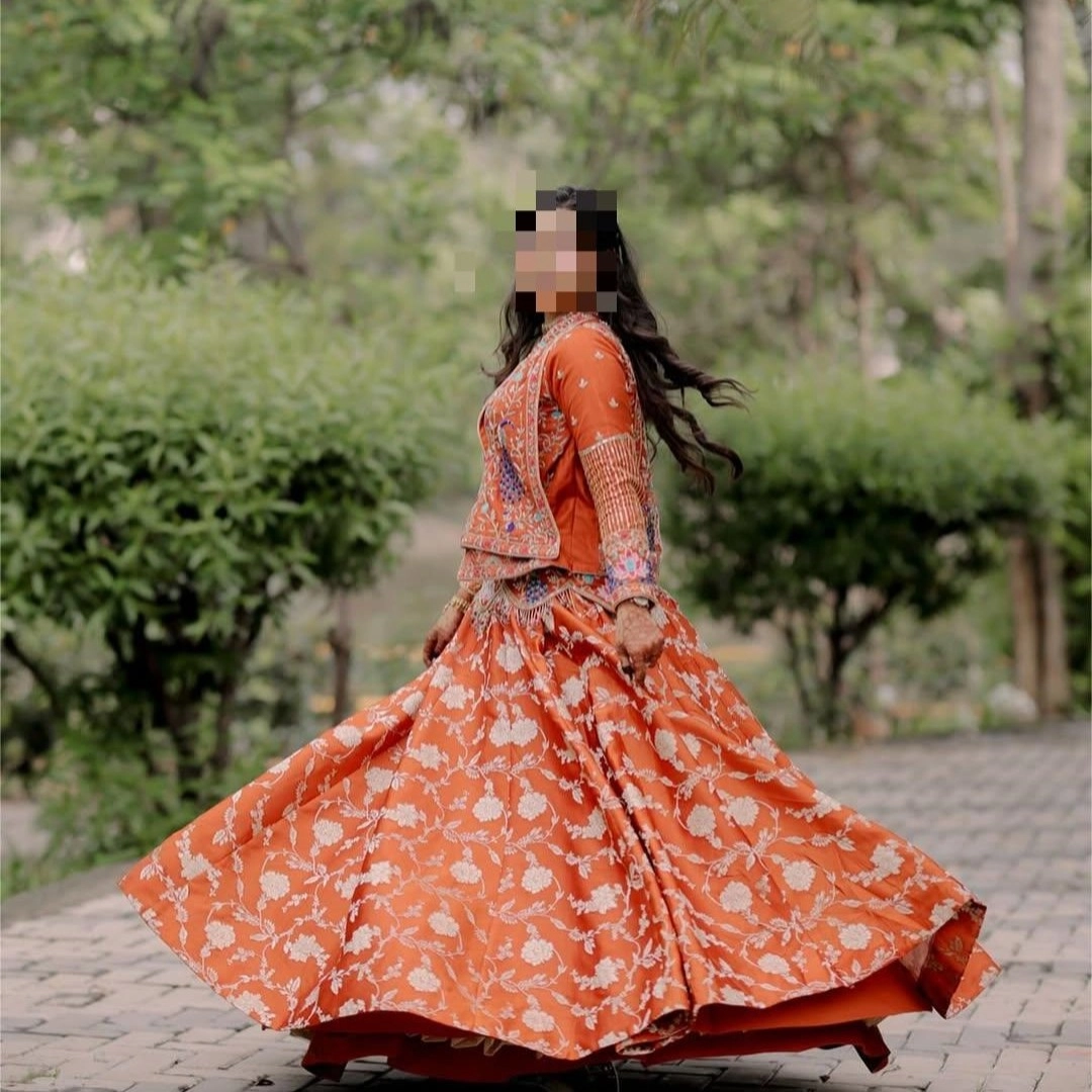beautiful orange chaniya choli with peacock designe pech work