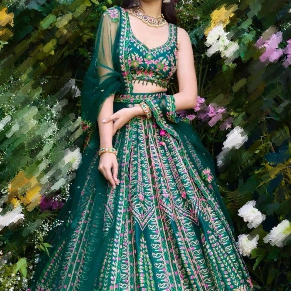 Green colour chaniya choli with embroidery work