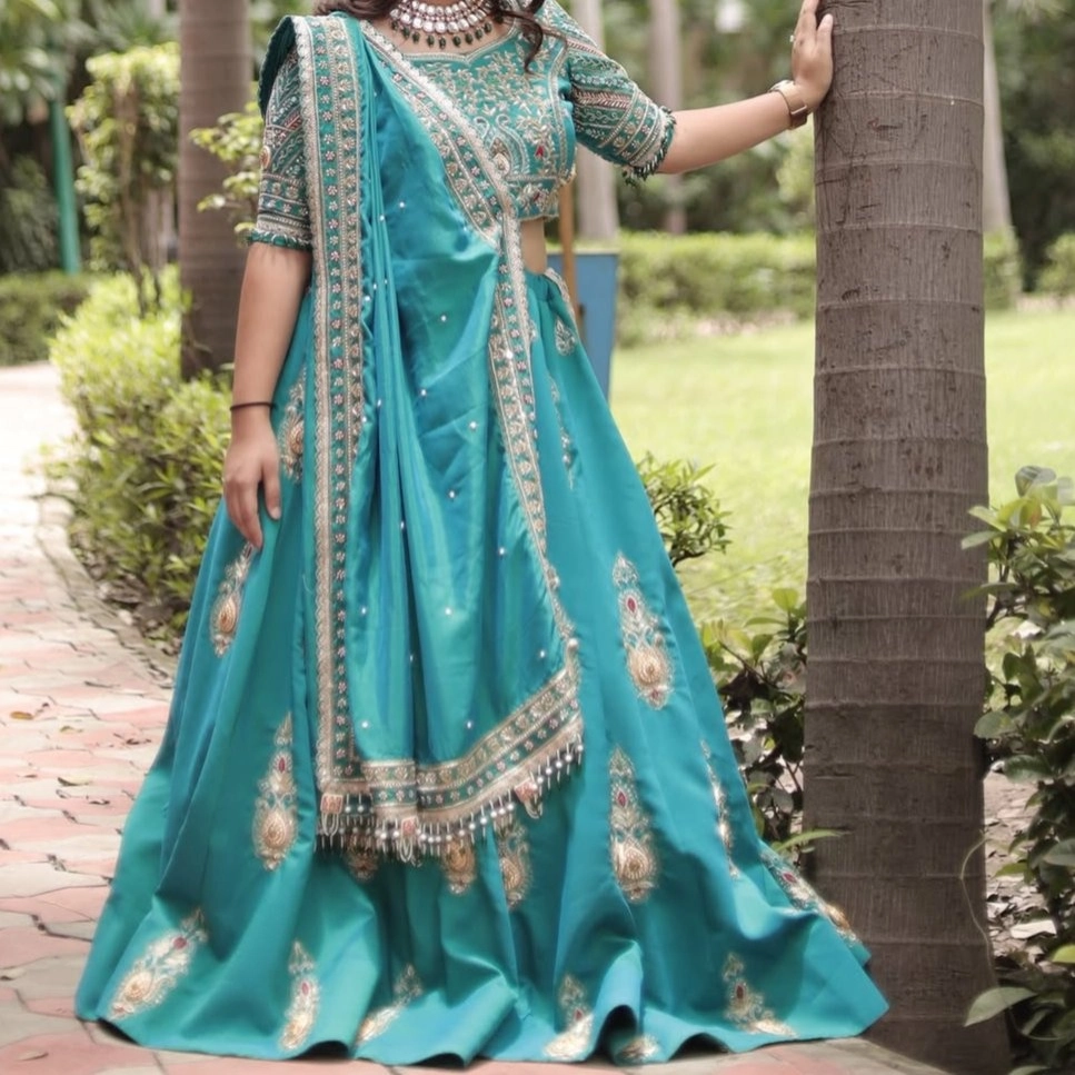 sky blue colour thread work choli with matching blouse or dupatta