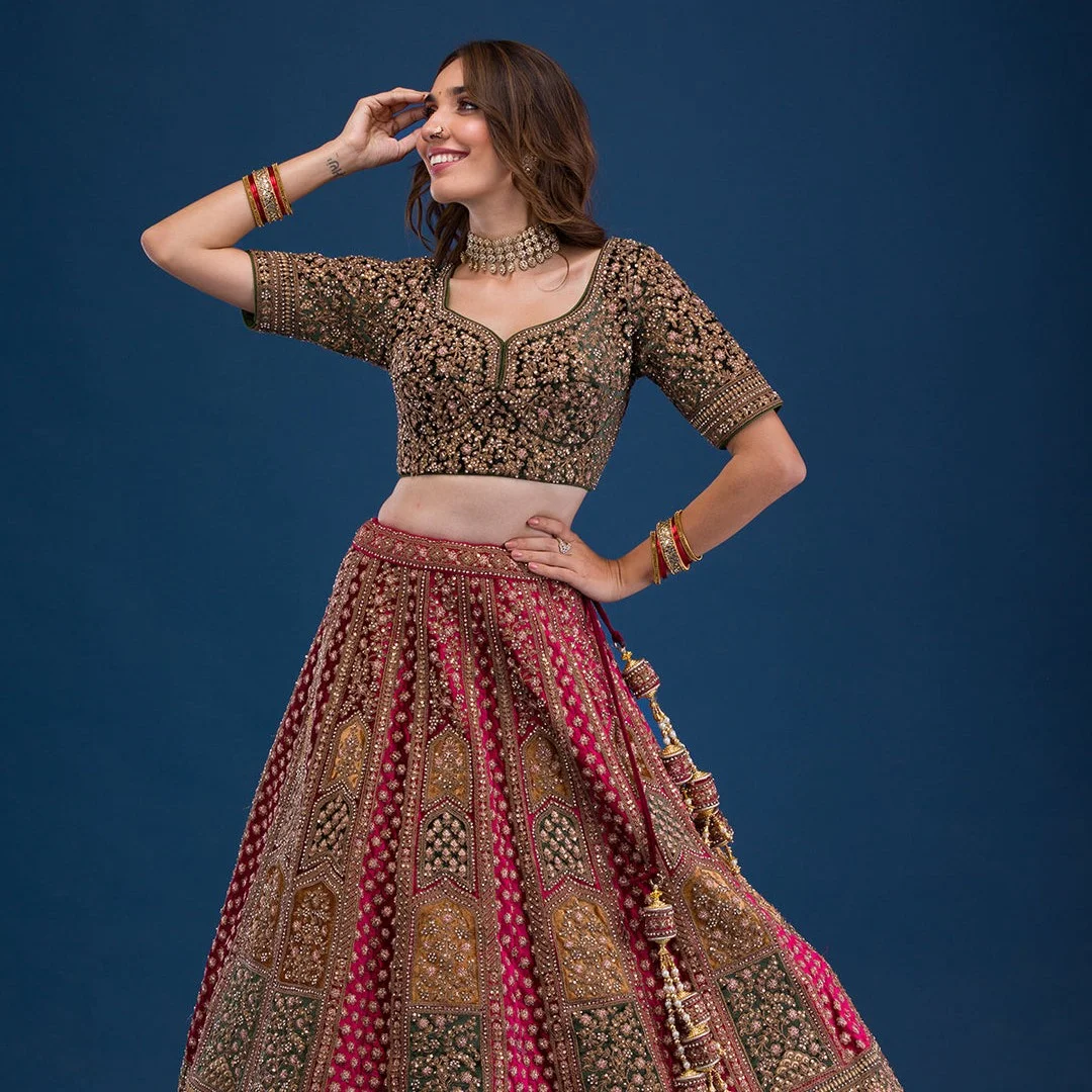 - Maroon Readymade Lehenga in Velvet fabric - The Lehenga is embellished with Zariwork embroidery - Accompanied with an Readymade blouse and dupatta - Comes with the Koskii promise of premium quality