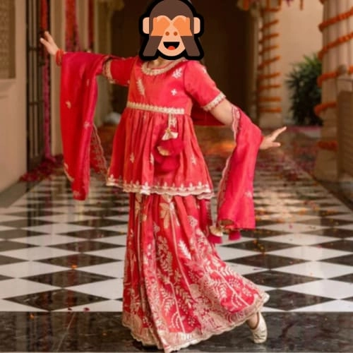 This elegant piece is perfect for special occasions. Pair it with traditional jewelry and a classic hairstyle to complete the look. For makeup, opt for a natural glow with a bold lip color to complement the outfit's sophistication. Consider adding statement earrings and a matching clutch to enhance the overall ensemble.