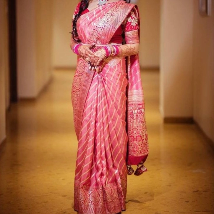 Banarasi pink saree with designer blouse